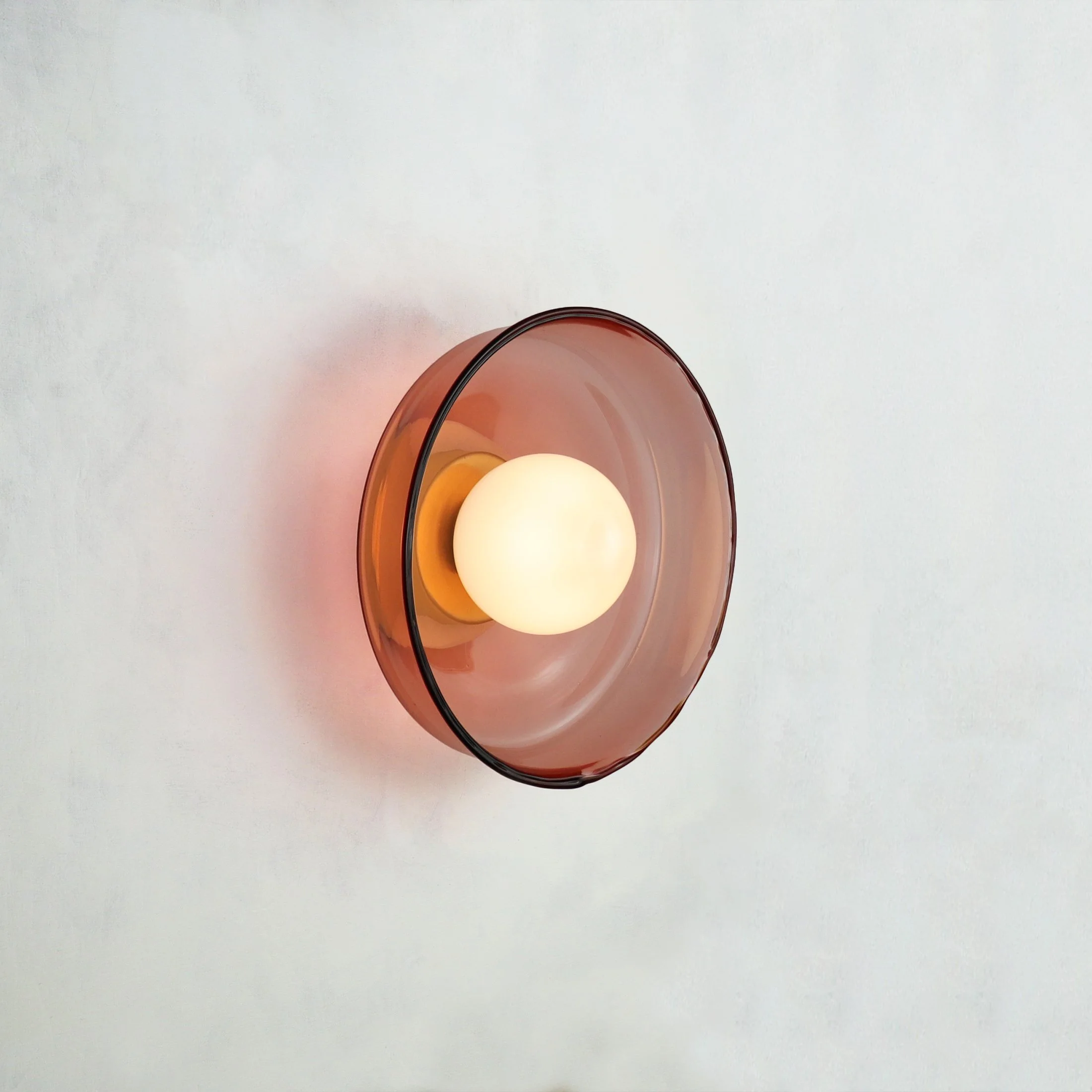 Wall light, The large wall light is a statement piece, crafted from hand-blown glass. Its generous scale allows it to add an atmospheric glow to the space.